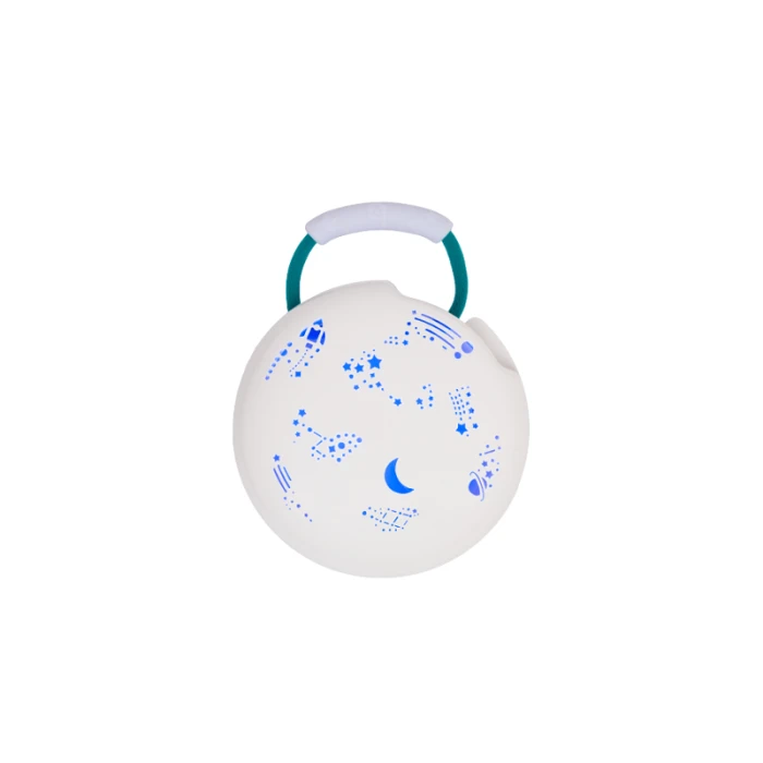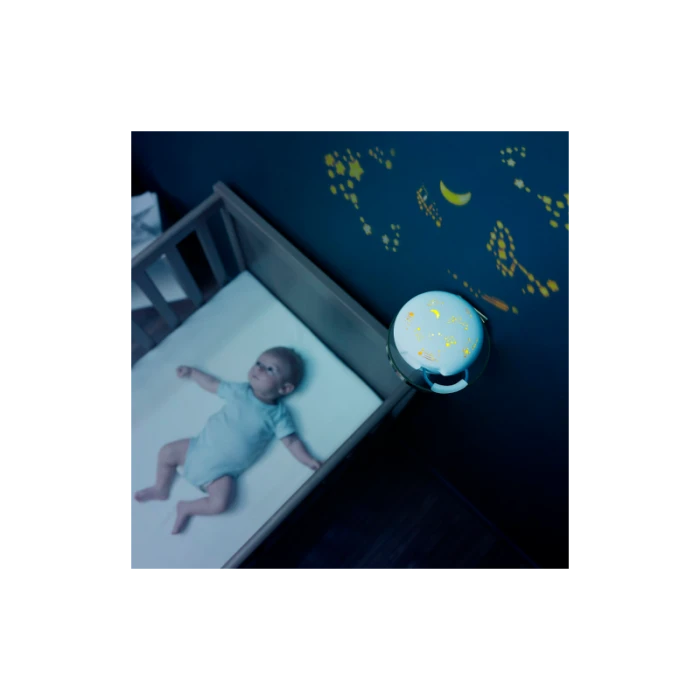 The Dreamy Nightlight can either emit a steady light or project a starry sky. The Dreamy base emits the colours of the rainbow either randomly or in fixed mode. The Dreamy Night Light comes with 6 lullabies* (melodies and white noise), making it a real hit with parents.