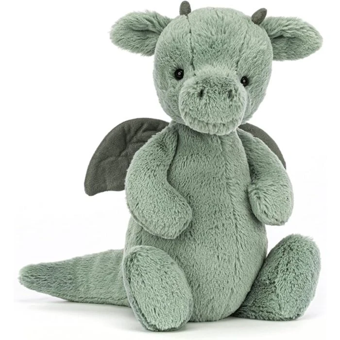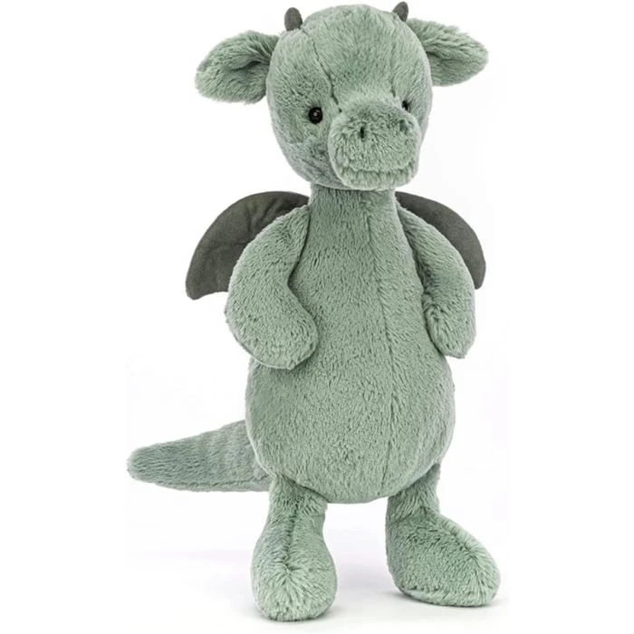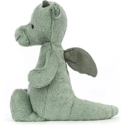 Bashful Dragon is a fierce little friend, with plenty of attitude! With supersoft fur in pale sage green, suedey horns and a long, squidgy tail, this brilliant beastie is pretty fantastic. We love those neat little contrast wings, chunky feet and fine flappy ears – what a legend!