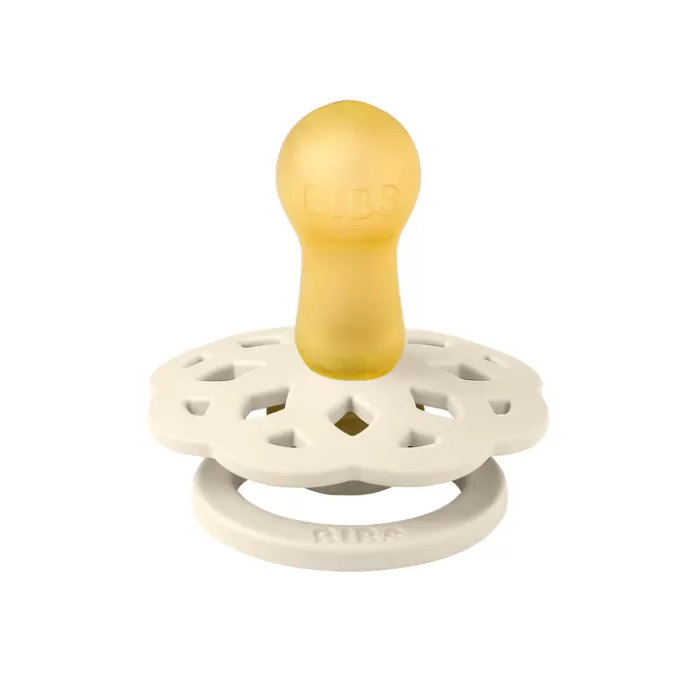 BIBS Boheme pacifier is inspired by the modern bohemian style. With its natural elements and organic silhouette Boheme appears in a fresh, creative, and aesthetic design. The round lightweight shield faces away from the sensitive and delicate skin around the baby’s mouth to ensure minimum contact with the baby’s nose and mouth, which means less chance of moisture build-up from saliva that can cause rashes and sore spots. The round nipple is designed to resemble the shape and size of the mother’s soft nipple and promotes a tongue placement and sucking technique similar to breastfeeding, since the round shape allows the sides of the tongue to elevate and cup around the nipple, as it does during breastfeeding. The pacifier is therefore recommended by midwives to support natural breastfeeding. The nipple is equipped with a valve that lets out air when the baby closes down on the nipple thereby flattening the nipple to shape naturally after the baby’s oral cavity. It is important to inform you that our different sizes are only a guide for you to follow. Our experience is that the following sizes are the general and therefore also our common recommendation.