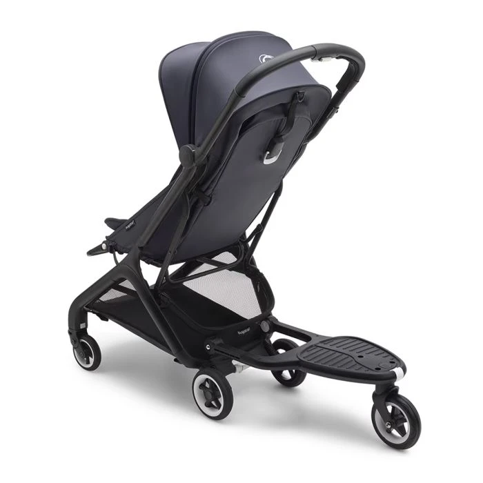 Head out with both baby and toddler in tow with the Bugaboo Butterfly comfort wheeled board +. It attaches to your Bugaboo Butterfly pushchair in just a few clicks, so your toddler can hop on and hop off anytime. When not in use, fold it upright or remove and stow it away altogether..Suitable for children from approximately 2 years (max. 20 kg). It includes a removable seat, so that your child can sit comfortably or stand on the coupled scooter while he walks. Or, simply remove the chair and store it in the shopping basket to save space. Flexible board positions for optimum comfort. Rotate the scooter sideways to position it on the left or right, so you have extra space to walk. The Butterfly wheeled board is specifically designed for the Bugaboo Butterfly stroller and adds 8cm at the rear (compared to the original Bugaboo comfort wheeled board) to ensure maximum comfort for both parents and children.