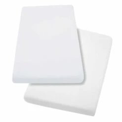 - Classic colours available: 2 pack of fitted sheets for travel cot in white cotton, unisex, for boys and girls