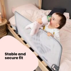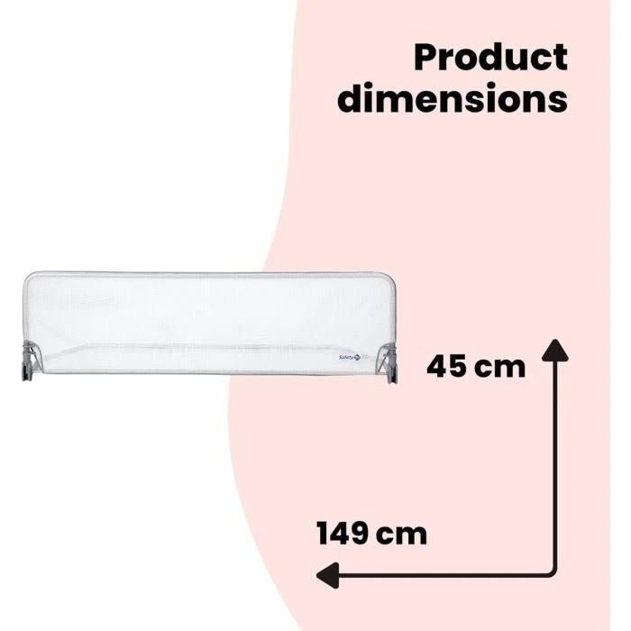 Safety 1st Extra Large Bed rail 150 cm is a useful bed accessory for a peaceful night’s sleep: it allows children to sleep safely and prevents them from falling out of bed whilst they are sleeping. This bed guard for kids is compatible with mattresses >200 cm long and 9 to 24 cm thick, both single and double. Equipped with an automatic lock in the upright position, it lowers with a gesture to facilitate access to the bed and to make changing sheets easier. The side rail is made of durable yet lightweight material, and is fitted with a mesh fabric that allows good ventilation while enabling the parent to monitor the child at all times.