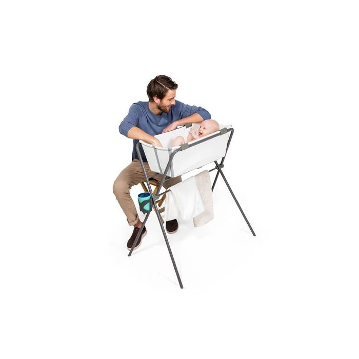 Stokke™ Flexi Bath is a foldable baby bath suitable from birth to four years. The space saving design makes it easy to store and convenient to use at home or when traveling, encouraging more shared bath time moments. Because Stokke™ are always striving to improve our products, we´re offering a heat sensitive drain plug. The plug works by turning colours, when the water gets warm giving parents a visual cue, letting them know that the water temperature is getting needs to be checked. Please note that the plug is not a thermometer. Always double-check the water temperature with your hand to ensure that it is the right temperature for your baby´s comfort and safety. If you are in any doubt, use a reliable thermometer for accuracy