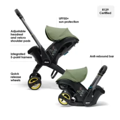 Doona i Car Seat & Stroller is a fully integrated travel system, allowing you to move from car seat to stroller in seconds. Doona i meets the strictest car seat and stroller safety standards and is R129 certified, (meets the European i-Size safety regulation) Doona i features an integrated 5-point harness; designed to distribute forces evenly across baby’s shoulders and hips. The 5-point harness is connected to the adjustable headrest, making them both easy to adjust depending on your baby’s height and avoids having to rethread the harness. Both the harness and headrest provide safety and comfort for your child, using energy absorbing, baby-safe materials.The car seat & stroller’s sleek design allows you to effortlessly get from A to B with your child whether it’s in your car, public transport or strolling around the city. The high durability wheels are designed for day-to-day strolls and maximises comfort for your little one, whilst the smooth faux leather handlebar cover and longer handle design ensures ease for parents too. Doona i also features Velcro shoulder pads that connects to the bottom of the headrest making it easier to place your baby into the stroller. The revolutionary car seat and stroller provides a safe and practical solution for parents on-the-go.Doona is the only car seat to have been tested and certified as an Infant Car Seat, a Stroller and an infant carrier providing overarching safety for your child in all circumstances. With its Anti-Rebound Bar* crash technology, superior 5-point safety harness and ergonomic infant insert, Doona is one of the safest car seats available today.