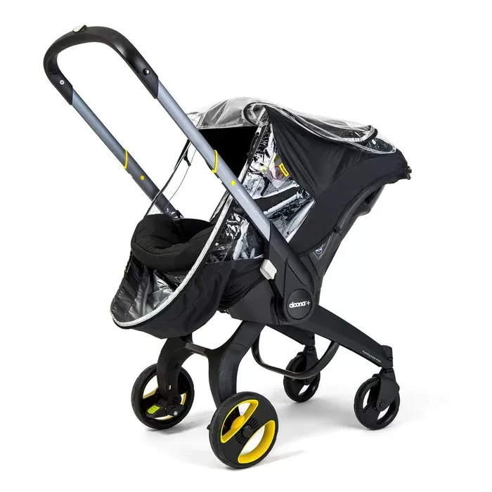The Doona Rain Cover is made of baby-safe materials. It has side ventilation holes to ensure that your baby is always comfortable, safe, and dry. The wide zipper opening provides easy access to your baby. With the simple Doona snap-on connectors, attaching and removing the rain cover is quick and easy. A compact carry bag for easy storage when not in use is included. Material: 70 %