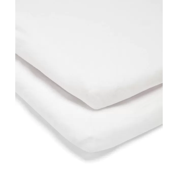 Complete your baby’s nursery with this two-pack of fitted sheets designed to fit onto the Lua bedside crib. Crafted from soft 100% cotton, these white sheets add an extra touch of style to any room. Plus, they’re machine washable and can be tumble dried for easy cleaning after those inevitable night-time accidents.