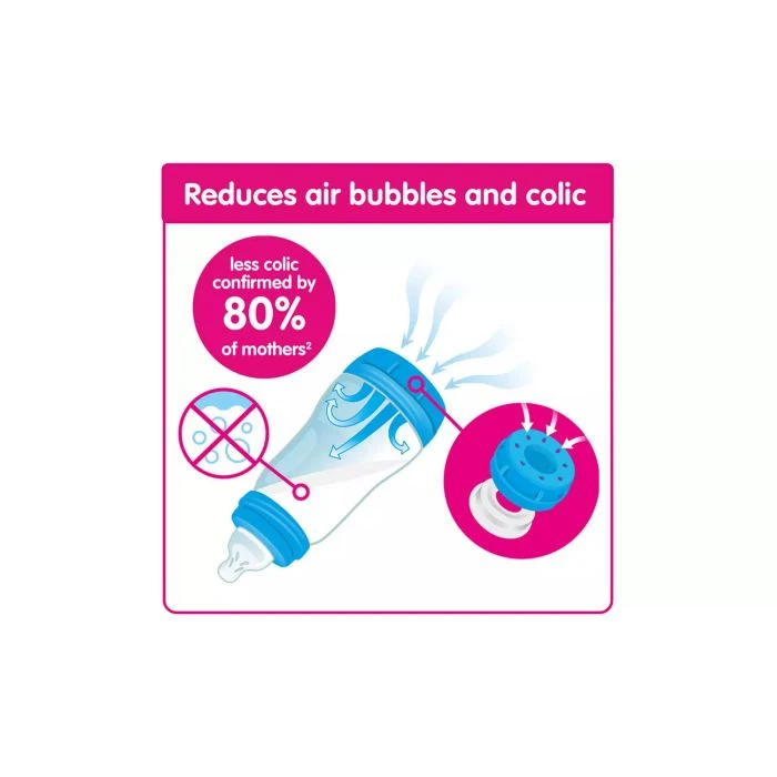 80% less colic and regurgitation thanks to the vented bottle base – for relaxed feeding.