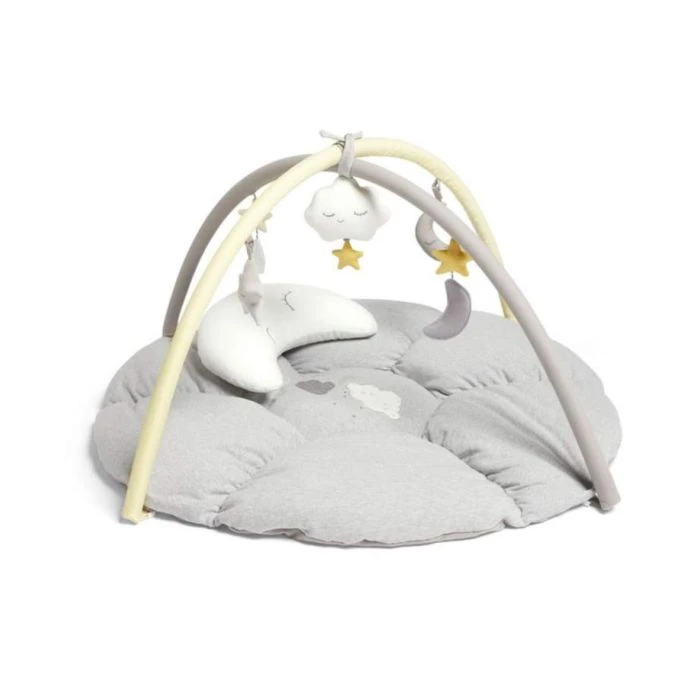 This luxurious playmat & gym is designed with supersoft fabric and a padded base to ensure your little one can play and explore its features in comfort. This playmat is a great way to encourage baby to play and explore independently while you watch. Featuring a range of hidden features like a rattle,crinkle texture & music.