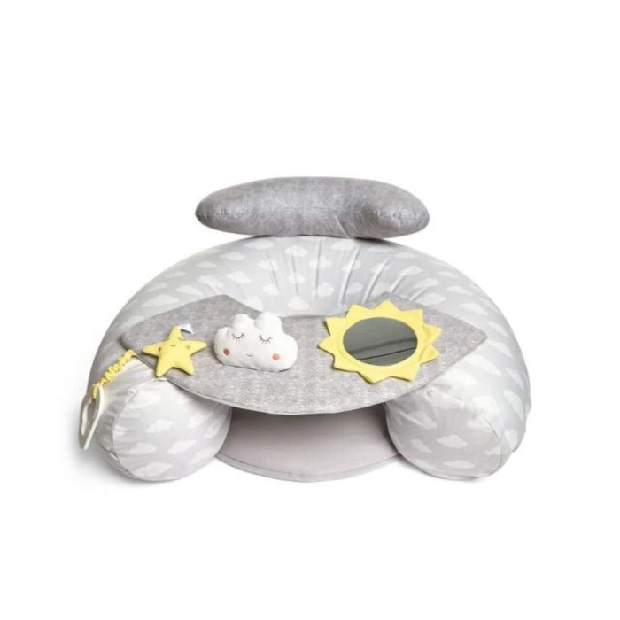 The Mamas & Papas Sit & Play makes independent play easy! The inflatable seat sits firmly on the floor while the raised back keeps your child secure and supported as they play. Covered in super soft fabrics with a brightly coloured design, it’s sure to stimulate your little one’s senses. It comes with a removable play panel that’s full of interactive features, including: crinkle texture, squeaker noise, a rattle and a mirror so they can see themselves.