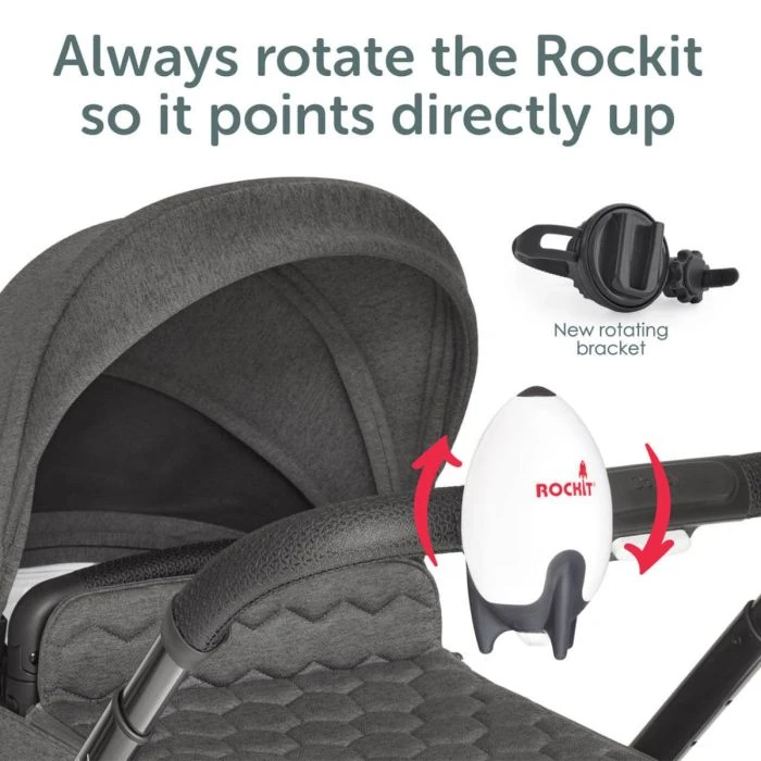 The new version of Rockit Portable Baby Rocker is now here. Just when you though Rockit can’t get any better. New Rockit is equipped with a rechargeable battery, which makes it more saver for the environment and your pocket too! Includes USB charging cable and improved rotating bracket.
