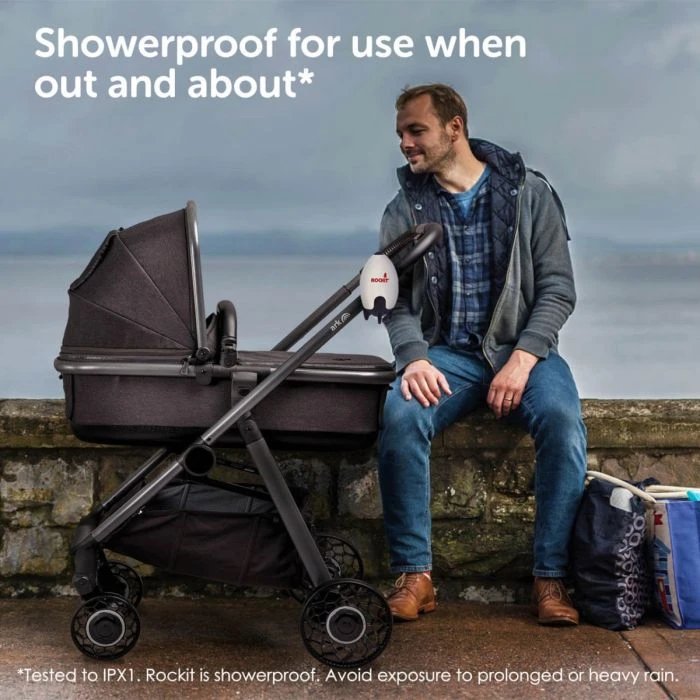 - Always ensure that the stroller or pram is on a level surface and the brake is firmly applied before attaching and operating the Rockit.