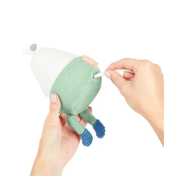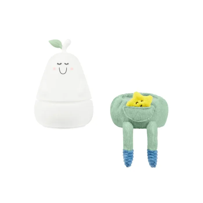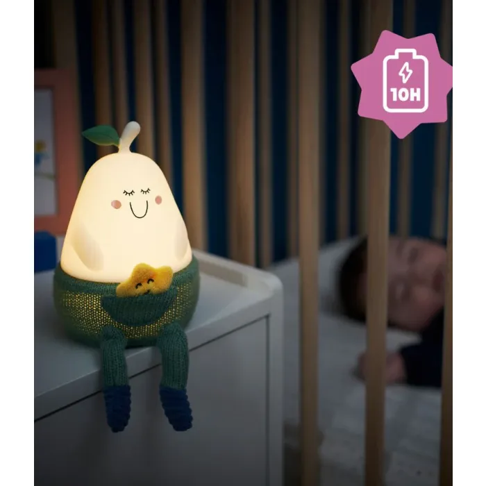 Meet Bertille: the silicone pear-shape nightlight!!. With one single value to control the different modes, Bertille night light is completely user-friendly for your child. Its soft colours and variety of materials will stimulate your baby’s senses of touch and sight. Its legs are easy to grasp, making it perfect for baby’s little hands. As your child grows, they can put it in their cot, enjoy putting the little trousers on or chat with the little star. It reassures baby with its 3 soft lighting modes (white light, 6 colours on a loop or solid colour). But this night light was also designed for you, as parents!. Bertille has a battery life of 10 hours, meaning there’s no need to get up in the night to help baby find their dummy. It is fitted with a rechargeable battery so that baby can sleep peacefully wherever you go. Your baby will never want to be without the adorable pear-shaped silicone nightlight for drifting off to sleep.