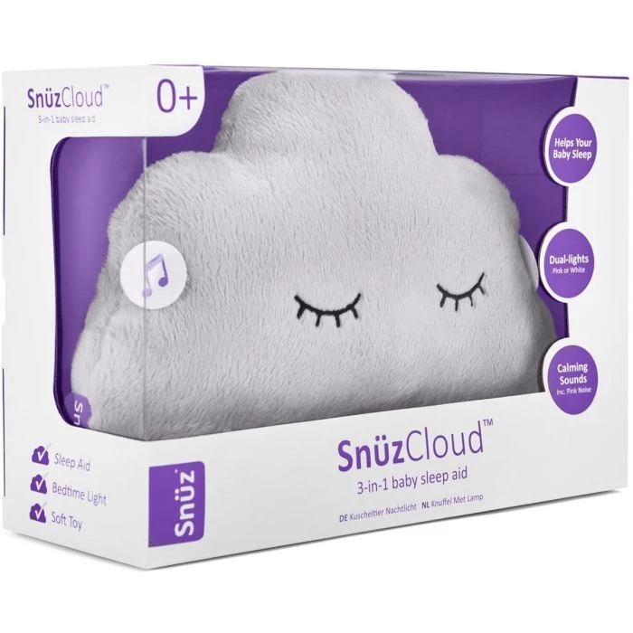 The cute Snuz Cloud 3-in-1 Sleep Aid in Grey is a portable baby sleep aid, that helps comfort and settle your little one. Easily attach onto a cot bed, car seat, pushchair or carrycot. This cute cloud offers calming mood lights, and 4 soothing sounds to choose from!