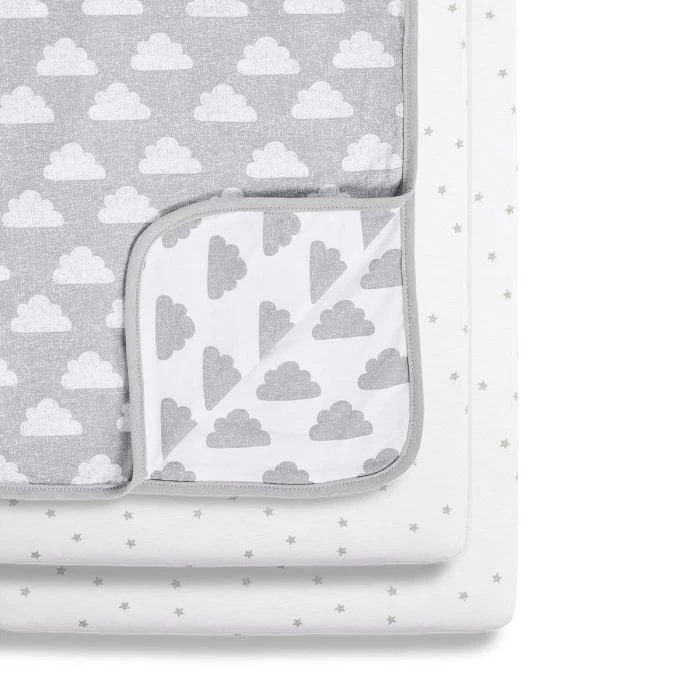 - Luxury jersey fitted sheets (x2) and Jersey interlock baby blanket