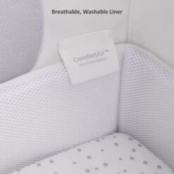 The SnuzPod⁴ Bedside Crib is designed to provide a comfortable and convenient sleeping solution for both parents and babies. With its innovative ComfortAir system, featuring air-flow vents and a machine washable mesh liner, the crib ensures optimal breathability, helping to regulate your baby’s temperature throughout the night. This is essential for promoting a good night’s sleep for both baby and parents.