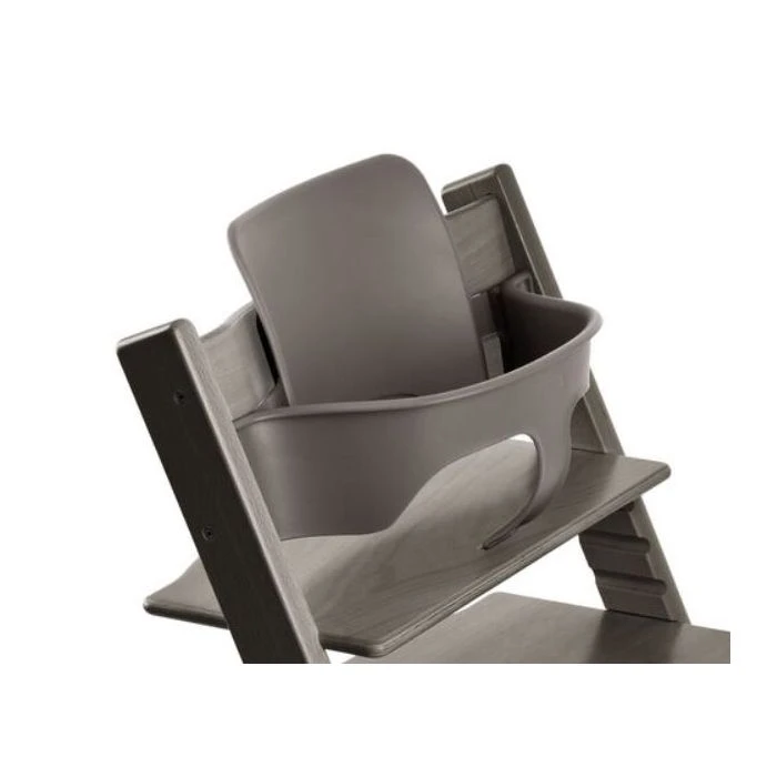 – The Baby Set consists of a high, easy clean backrest and front baby rail. In our opinion, this converts the Tripp Trapp® into the best high chair in the world.