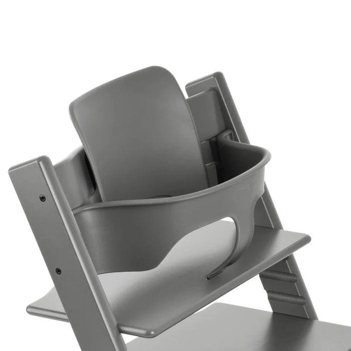 – The Baby Set consists of a high, easy clean backrest and front baby rail. In our opinion, this converts the Tripp Trapp® into the best high chair in the world.