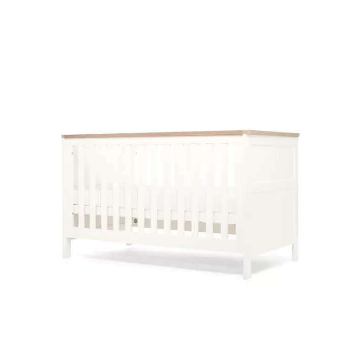 Wedmore exquisite 2-piece nursery furniture bundle that combines functionality, style, and charm effortlessly. With the Wedmore Cotbed & Dresser White & Natural colours, creating a dreamy and welcoming nursery has never been easier. Dive into the world of seamless design and versatile storage solutions as you explore this captivating 2 piece nursery furniture bundle. Thanks to a baby cot bed that converts into a toddler bed and a removable changing top for your nursery dresser, Wedmore 2-piece nursery furniture set will see baby from newborn into toddler years and beyond. And when it’s time for a nap, the 3 adjustable cot base heights ensure baby is safe as they grow bigger and become more mobile.